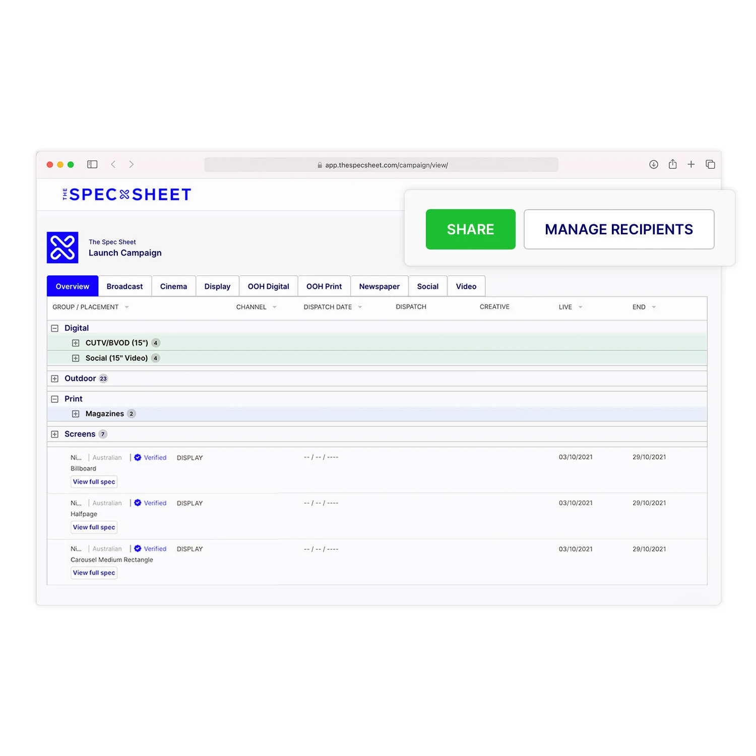The Spec Sheet is an online hub for managing and sharing up-to-date ad specs between media owners, planners, and producers - to help teams stay on time and to spec.